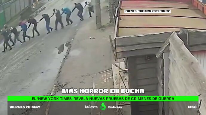 Como se puede comprobar en las imágenes-tomadas en el mes de marzo en Bucha (Kiev)-, son llevados hasta un edificio ocupado por las tropas rusas. En ese grupo de prisioneros se puede observar un hombre con una sudadera azul. Según los testigos, fueron asesinados. Estas mismas fuentes, recogidas por el diario estadounidense, confesaron que se escucharon disparos, instantes después de recoger las imágenes, y nunca más vieron salir a los cautivos.