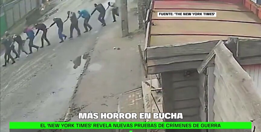 El New Yortk Times está realizando una investigación periodística para recopilar las imágenes que evidenciarían crímenes de guerra cometidos por el Kremlin. La secuencia de la portada sería una de ellas. En este caso se puede ver nueve hombres ucranianos que caminan mientras de dos soldados rusos, que les apuntan con armas.