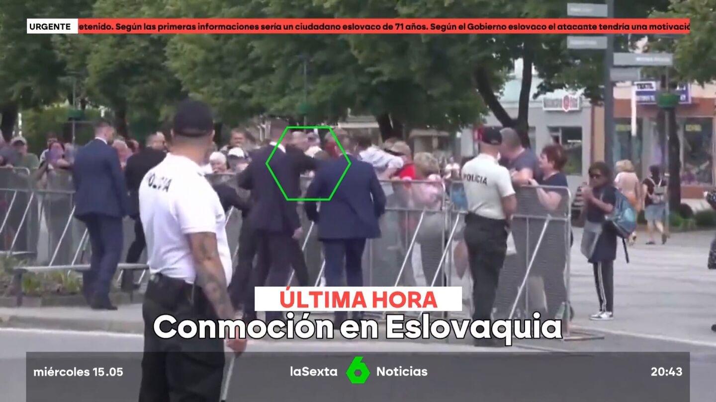 El primer ministro de Eslovaquia, Robert Fico, ha resultado herido este miércoles tras ser disparado al término de una reunión del Gobierno celebrada en la ciudad de Handlova, en el centro del país, en un incidente que desde su partido, Smer, vinculan a la oposición. Unos hechos que han sido grabados justo en el momento en el que Yuraj Cintula dispara directamente al primer ministro Robert Fico.