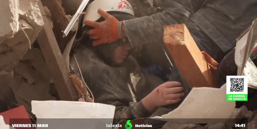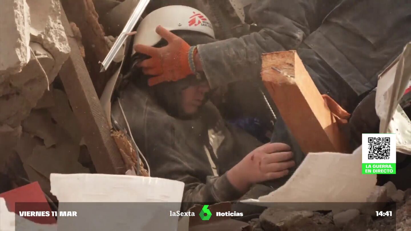 De debajo de esos escombros han rescatado a un niño tras uno de esos ataques. Las imágenes son desgarradoras: el pequeño había quedado atrapado entre hormigón y, casi inconsciente, los rescatistas le han colocado un casco y le han sacado.