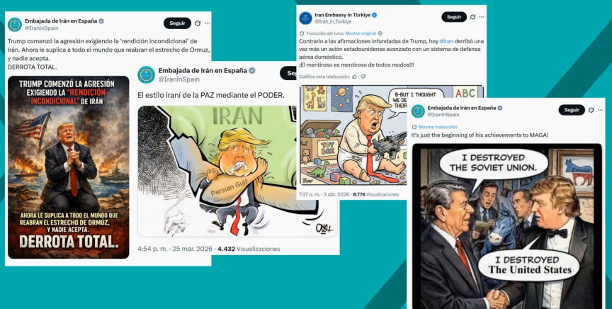Las embajadas que tiene Irán por todo el mundo llevan semanas usando sus armas propagandísticas. Y lo que llama la atención es su tono. Buscan memes y chistes locales para colar sus mensajes contra el presidente de Estados Unidos, Donald Trump, entre risa y risa. A pesar de esto, no hay que olvidar que son un régimen terrible.
