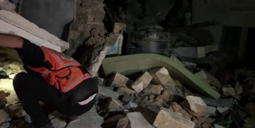 Los equipos de rescate trabajan en la zona para rescatar a personas que se encuentran bajo los escombros de la iglesia, en la que decenas de familias, tanto cristianas como musulmanas, se refugiaban de los bombardeos, según ha informado la agencia de noticias WAFA.