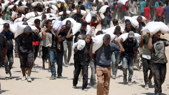 Israel ha permitido la entrada de camiones con ayuda humanitaria en la Franja de Gaza, en respuesta a la presión internacional por el aumento de muertes por desnutrición. Sin embargo, las imágenes de miles de gazatíes intentando obtener alimentos reflejan la desesperación existente. Aunque 100 camiones han llegado, esta ayuda es insuficiente para paliar la crisis, según Raquel Martí de UNRWA España, quien señala que se necesitan cientos de camiones diarios. La ayuda aérea es peligrosa y escasa, mientras el personal de UNRWA sufre hambre. La situación es crítica, con 147 muertes por inanición. Israel ha anunciado pausas tácticas, pero los combates continúan, lo que, según Jesús Núñez, refleja un intento de evitar críticas internacionales sin ofrecer una verdadera pausa humanitaria.