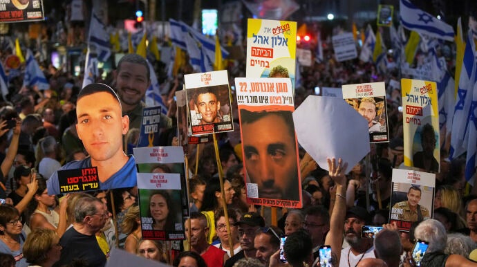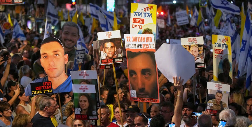 Cientos de manifestantes y familias de rehenes secuestrados por Hamás en Gaza han desafiado al estado y al primer ministro Benjamin Netanyahu, exigiendo el fin de la guerra. Pese al desacuerdo con el Gobierno israelí, la postura extrema de este no ha disuadido a los manifestantes, quienes han decidido "parar la ciudad" tras la difusión de imágenes de los rehenes en condiciones deplorables. Han bloqueado las principales autopistas de Israel, incluyendo la que conecta Jerusalén y Tel Aviv, como parte de una huelga nacional convocada por el Foro de Familias de Rehenes. Además, han acampado en la frontera de Gaza para presionar por un acuerdo que libere a sus seres queridos.