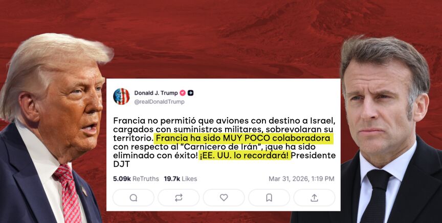 "Francia no permitió que aviones con destino a Israel, cargados de suministros militares, sobrevolaran el territorio francés. ¡Francia ha sido MUY POCO COLABORADORA con respecto al 'Carnicero de Irán', quien ha sido eliminado con éxito!", ha escrito el presidente de EEUU, Donald Trump, en un mensaje en su red Truth Social en el que ha insistido en que "¡¡¡Estados Unidos lo RECORDARÁ!!!".