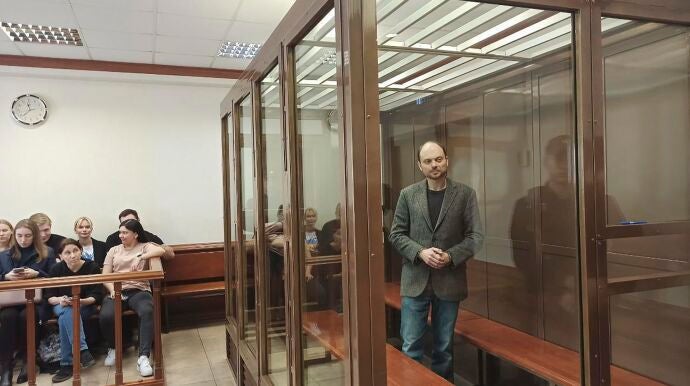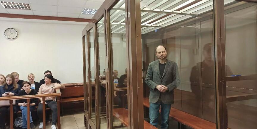Kara Murza, que ya estaba considerado por las autoridades rusas como un agente extranjero y tiene pasaporte británico, ha sido condenado este lunes por traición, difusión de información falsa sobre las Fuerzas Armadas y cooperación con una organización indeseable, delitos por los que ha sido sentenciado a una larga condena en una cárcel de máxima seguridad. Además, el tribunal también le ha impuesto una multa de 400.000 rublos (el equivalente a unos 4.470 euros).