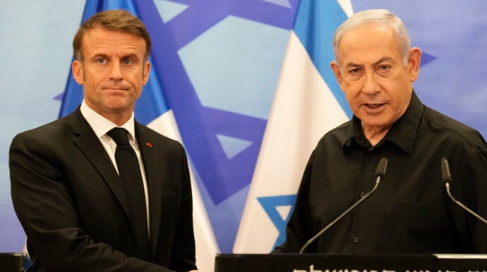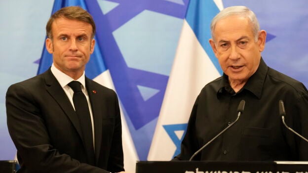 "Vine a comunicarle la solidaridad de Francia frente a nuestro enemigo común, el terrorismo", ha asegurado Macron a Netanyahu, al defender "el derecho legítimo de Israel a defenderse" del grupo islamista palestino Hamás, que perpetró el 7 de octubre un ataque contra el Estado judío.