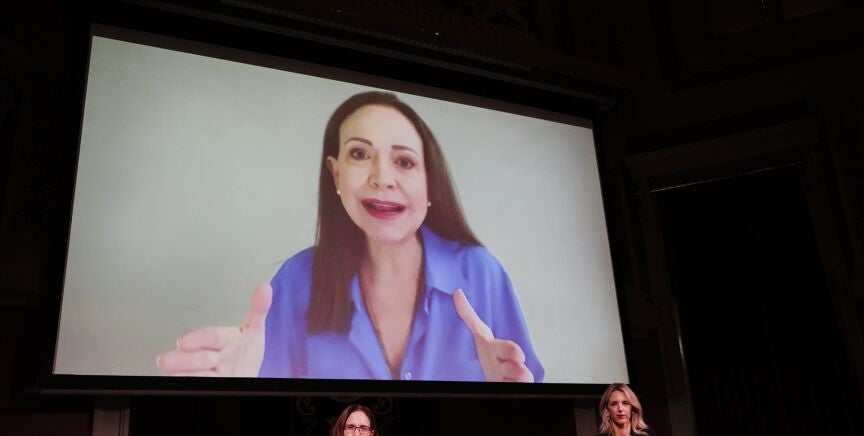 El jurado determinó que Machado, a la que definió como "una figura de unidad en una oposición política que antes estaba dividida", se ha visto "obligada a vivir escondida" y permanece dentro de Venezuela, "una decisión que ha inspirado a millones" de personas.
