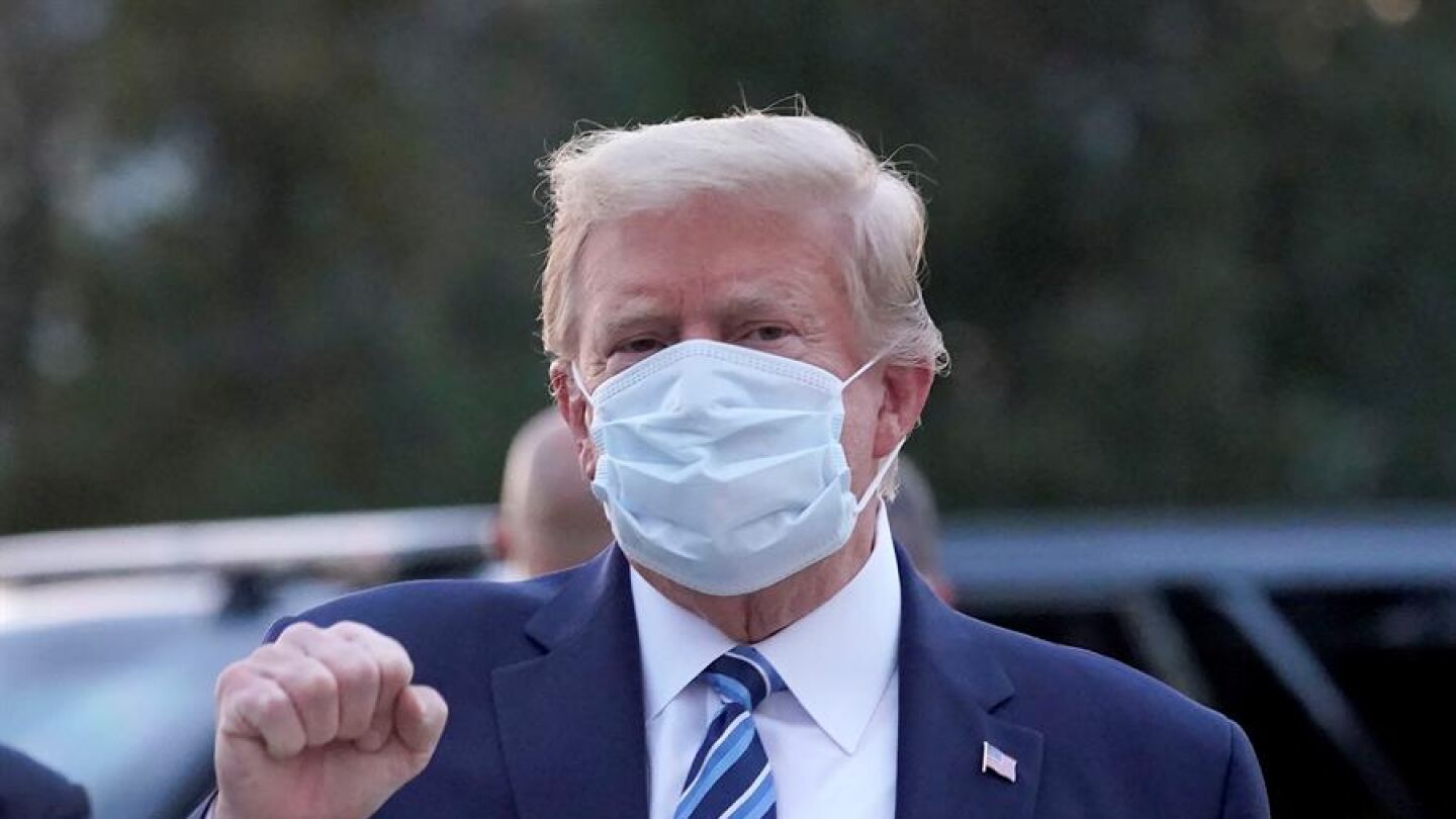 El presidente ha experimentado al menos dos bajadas de oxígeno desde que dio positivo por la enfermedad, pero el lunes, al llegar a la Casa Blanca desde el hospital militar donde estuvo ingresado, pidió a los estadounidenses no "temer" a la enfermedad ni dejar que "domine" sus vidas.