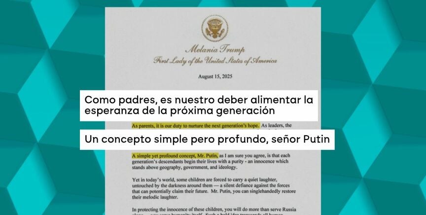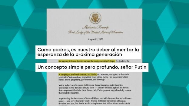 Melania Trump, primera dama de Estados Unidos, entregó a Vladímir Putin una carta en la reunión que el presidente de Rusia mantuvo con Donald Trump en Alaska. Una reunión que acabó sin acuerdos, pero con el ruso con una misiva en sus manos en la que la esposa del presidente estadounidense apeló a sus sentimientos para proteger a los niños de Ucrania.