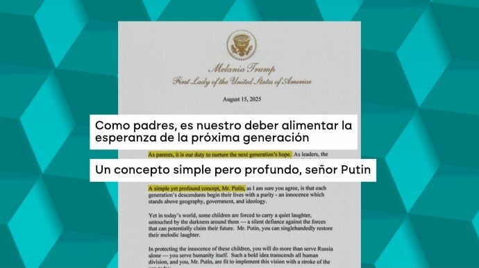 ¿Qué ha dicho? La primera dama entró al presidente ruso una misiva durante la reunión de Alaska. En ella, pide a Putin que vele por la "inocencia" de los más pequeños.
