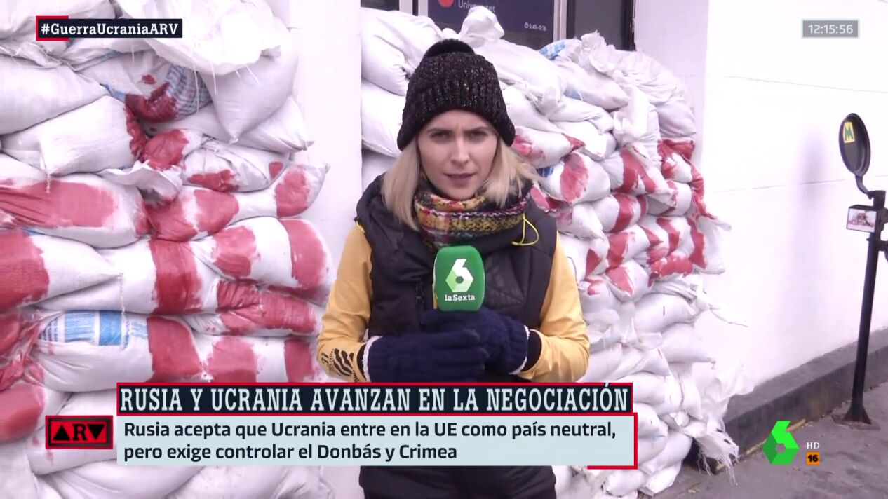 Con todo, sigue habiendo gente que se refugia en el metro, un lugar al que no permiten el acceso de las cámaras. Cerca, hay un túnel pasante que en una situación normal fue creado para facilitar el día a día de los ciudadanos por el frío, pero ahora también se ha convertido en un lugar para resguardarse. Asegura la reportera que es el camino que toman muchos ucranianos cuando se encuentran en la calle y suenan las alarmas antiaéreas.