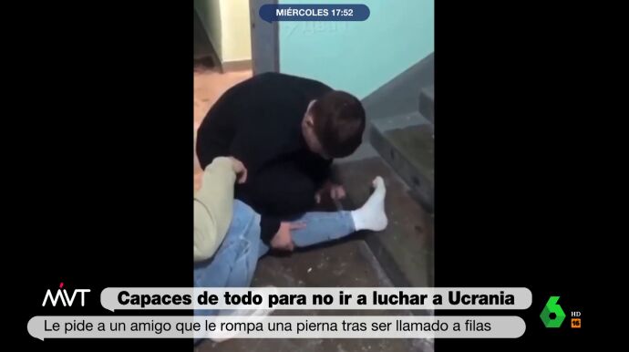El momento en el que un ciudadano ruso le parte la pierna a otro a propósito para no ir a la guerra