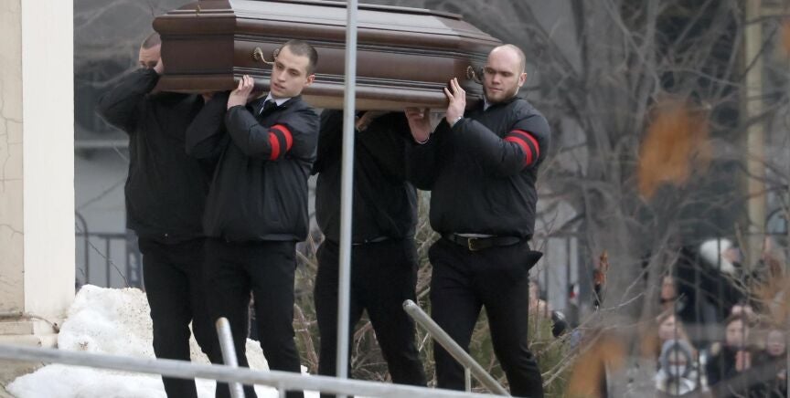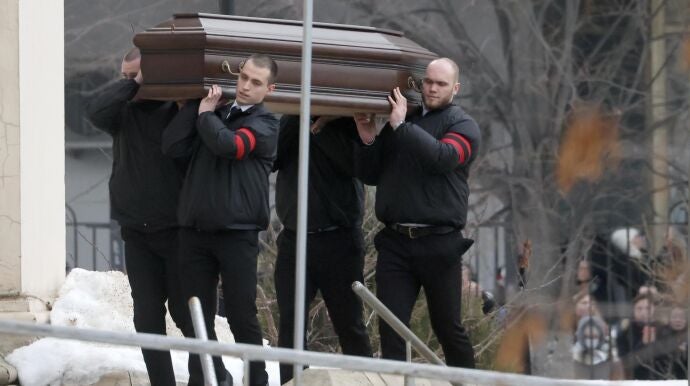 Por último, los restos mortales de Navalni han sido trasladados al cementerio de Borisov, tras una breve ceremonia de media hora en una iglesia de las afueras de Moscú a la que no pudieron asistir.