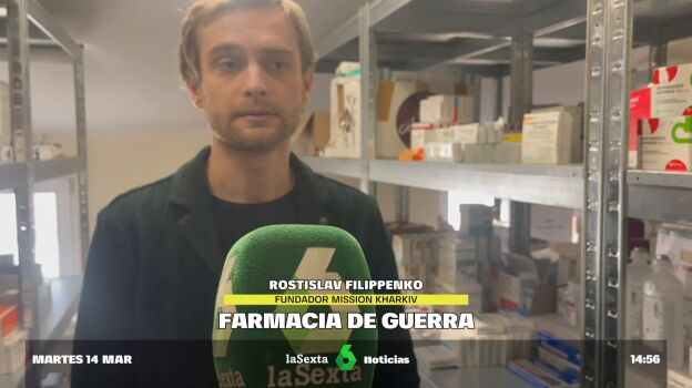 Un joven matemático, de nacionalidad española y origen ucraniano, ha montado una farmacia en Jarkiv con medicamentos que recibe de España. Él mismo nos enseña su laboratorio.
