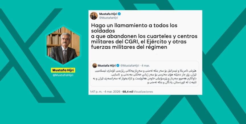 Aun así, líderes kurdos han transmitido públicamente mensajes que parecen vinculados a este escenario. Uno de ellos habría dirigido un llamamiento a soldados kurdos que colaboran con el régimen iraní para que abandonen los cuarteles y centros militares, en lo que interpretó como una advertencia ante posibles enfrentamientos.