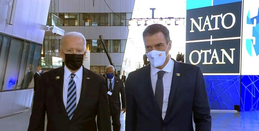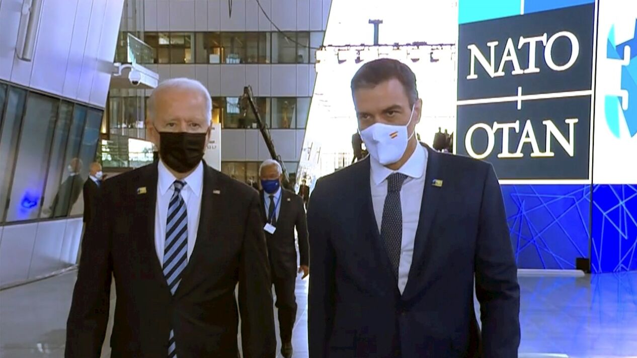 Pedro Sánchez y Joe Biden mantuvieron una conversación en la cumbre de líderes de la OTAN, al margen del paseo que captaron las cámaras.