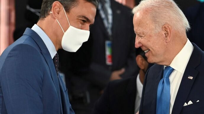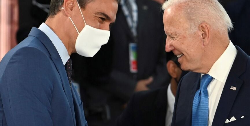 Pedro Sánchez y Joe Biden se saludan y conversan amistosamente al inicio de la cumbre del G20