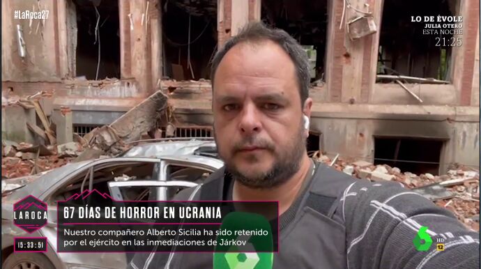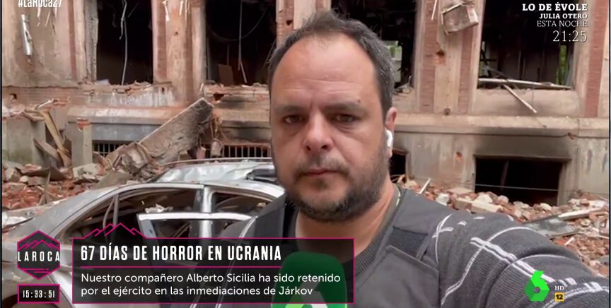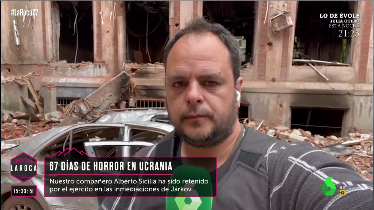 Cuando se cumplen 67 días del horror en Ucrania, Alberto Sicilia, enviado especial de la Sexta al país, ha sido retenido en las inmediaciones de Járkov, según ha informado Nuria Roca. Sin embargo, el periodista ha podido enviar a La Roca su última crónica de la situación actual de la ciudad antes de ser retenido, que puedes ver en el vídeo principal que acompaña a esta noticia.