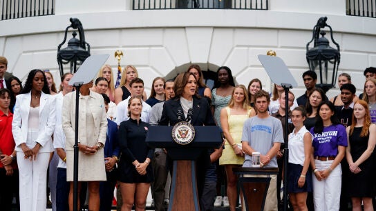 "El legado de logros de Joe Biden durante los últimos tres años no tiene parangón en la historia moderna. En un mandato ya ha superado el legado de la mayoría de los presidentes que han servido dos mandatos en el cargo", ha manifestado en su primer acto como aspirante tras el fin de la campaña electoral de Biden, quien la respaldó para enfrentarse al expresidente Donald Trump en noviembre.