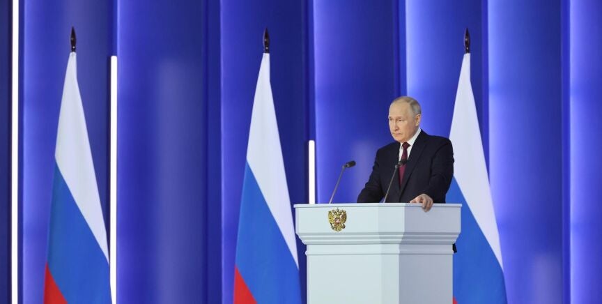 "Vamos a introducir todas las tecnologías modernas para aumentar el potencial militar. Ya trabajamos en el desarrollo de armas militares que, por sus características, son superiores al armamento militar occidental. Estamos desarrollando la producción enserie de todos estos mecanismos". Es la advertencia que ha lanzado el presidente de Rusia, Vladímir Putin, en un discurso especial que ha realizado con motivo del aniversario del primer año de guerra en Ucrania, y en el que ha acusado a Occidente de iniciar el conflicto. Así se ha expresado el líder ruso durante una intervención en la que ha anunciado también la suspensión del cumplimiento por parte de su país del START III o Nuevo START, último tratado de desarme nuclear aún vigente entre Rusia y EEUU.