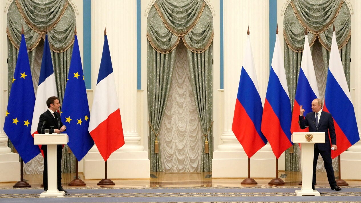 En un contexto en el que Joe Biden ha defendido que Vladimir Putin y Rusia invadirán Ucrania, el Kremlin ha confirmado que el presidente ruso hablará telefónicamente este domingo con Emmanuel Macron, evitándose esta vez una imagen como la que nos dieron en su último encuentro, con ambos dirigentes separados por una mesa de cuatro metros.