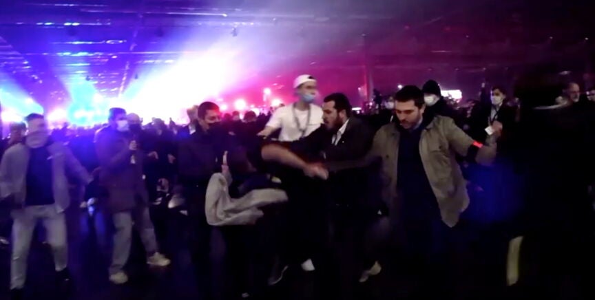 En otro momento del acto, un hombre agarró del cuello al propio candidato. La Fiscalía ha abierto una investigación sobre los incidentes violentos ocurridos durante el primer mitin de Zemmour, que se postula a las elecciones presidenciales.