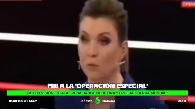 "Podemos decir que ha comenzado la Tercera Guerra Mundial", continúa Olga Skabeyeva, presentadora del programa. Elevan así el tono ante una nueva fase en la que Rusia busca, aseguran, desmilitarizar a la OTAN.