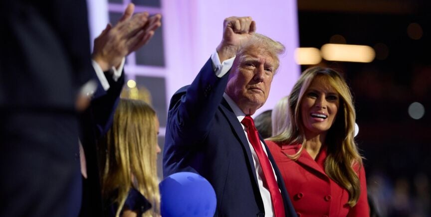 Trump habló en la clausura de la Convención Nacional Republicana, inaugurada el lunes en Milwaukee y que tenía como objetivo confirmar su candidatura y la de su "número dos", el senador por Ohio J.D. Vance. El magnate neoyorquino llegó a la ciudad un día después de haber sido herido de bala el sábado en Butler (Pensilvania) y aunque no intervino hasta este jueves, su presencia en los días anteriores mostró que el apoyo de sus correligionarios no tiene fisuras.