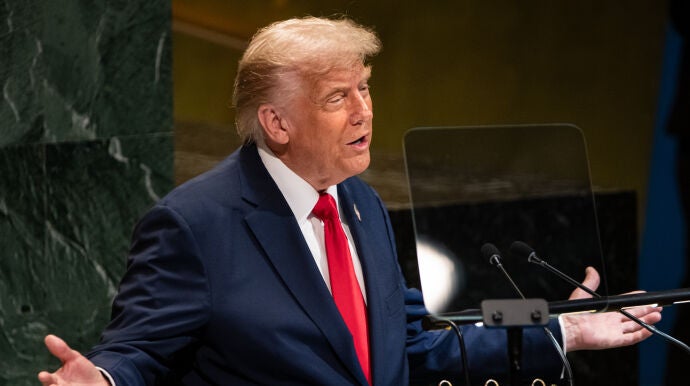 Donald Trump ha vuelto a subirse al atril de la Asamblea General de la ONU para dinamitar los puentes que los países habían tendido para la solución de los dos Estados en la Franja de Gaza. El presidente de Estados Unidos, utilizando su discurso más agresivo, ha abroncado al organismo, al que acusa de limitarse a redactar "cartas muy enérgicas" y de difundir "mentiras" sobre el clima.