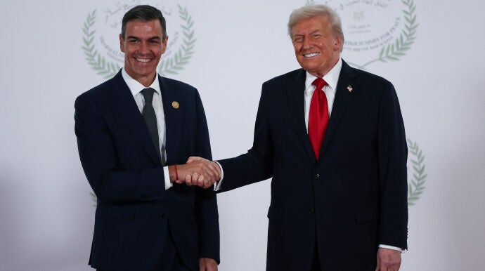 Rodeado de una treintena de mandatarios de distintos países que se habían reunido para celebrar el acuerdo de alto el fuego entre Israel y Hamás, y entre los que se encontraba Pedro Sánchez, Trump aprovechó para preguntar si están trabajando con respecto al PIB.