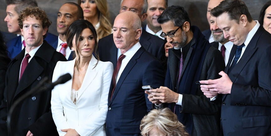 Los detalles Con Elon Musk a la cabeza, Zuckerberg, Cook, Pichai y Bezos han presenciado la toma de posesión de Trump desde un lugar privilegiado: justo detrás de su familia. O lo que es lo mismo: Tesla, Meta, Apple, Google y Amazon, rendidas al nuevo presidente.