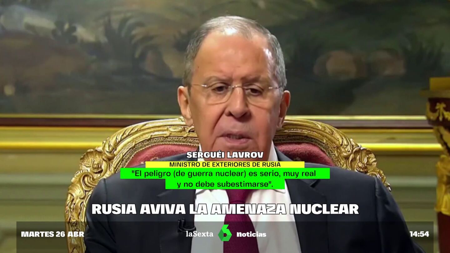 El ministro de Exteriores de Ucrania, Dmytro Kuleba, ha asegurado este martes que cuando Rusia habla de la posibilidad de que se desate una Tercera Guerra Mundial, esta vez nuclear, es porque siente que está perdiendo la batalla en Ucrania. Kuleba ha respondido así a su colega ruso, Sergei Lavrov, quien este lunes alertó sobre el peligro de una guerra nuclear que, según dijo, "es grave, es real (y) no debe subestimarse". Lavrov declaró en una entrevista que aunque "la inadmisibilidad de una guerra nuclear es la posición de principios de Moscú, el peligro de tal conflicto no debe subestimarse"."Rusia pierde la última esperanza de asustar al mundo para que no apoye a Ucrania. De ahí que se hable de un peligro 'real' de la Tercera Guerra Mundial", ha respondido Kuleba en su cuenta de Twitter.