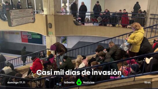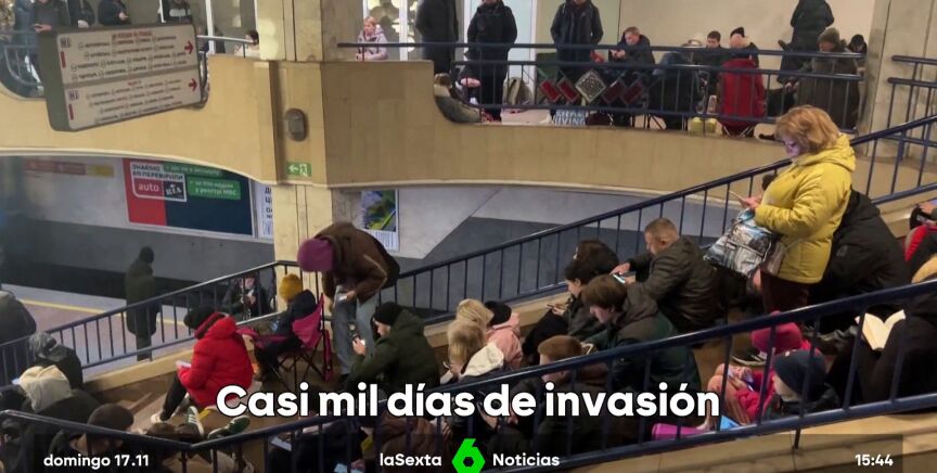 Cargados con los carritos de sus bebés, acompañados de sus mascotas y equipados contra el frio. Casi mil días después del inicio de la invasión, los habitantes de Kyiv siguen bajando al metro para refugiarse de los bombradeos rusos.