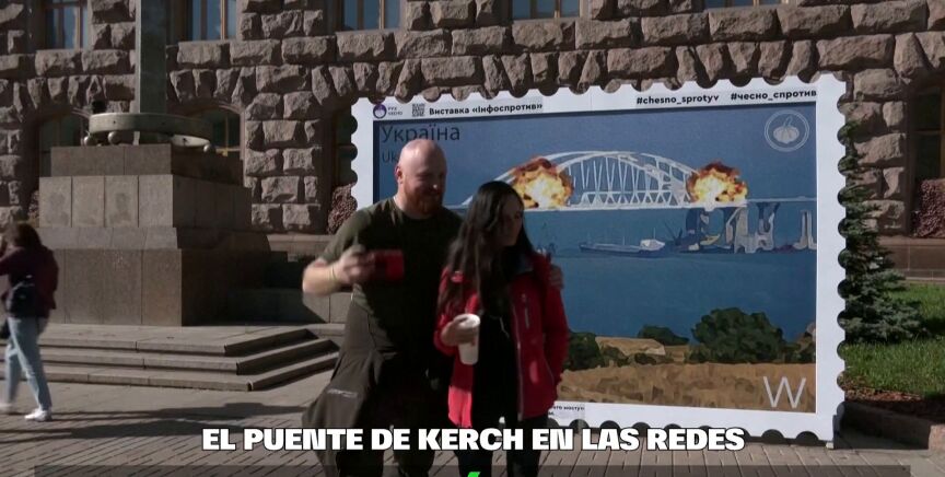 Lo que para Putin es todo un símbolo, para los ucranianos es un meme. La destrucción del puente de Kerch se ha convertido en un photocall en pleno centro de Kiev. "Estamos muy emocionados. Las noticias son buenas. Estábamos esperándolo", confiesa un ciudadano del país invadido.