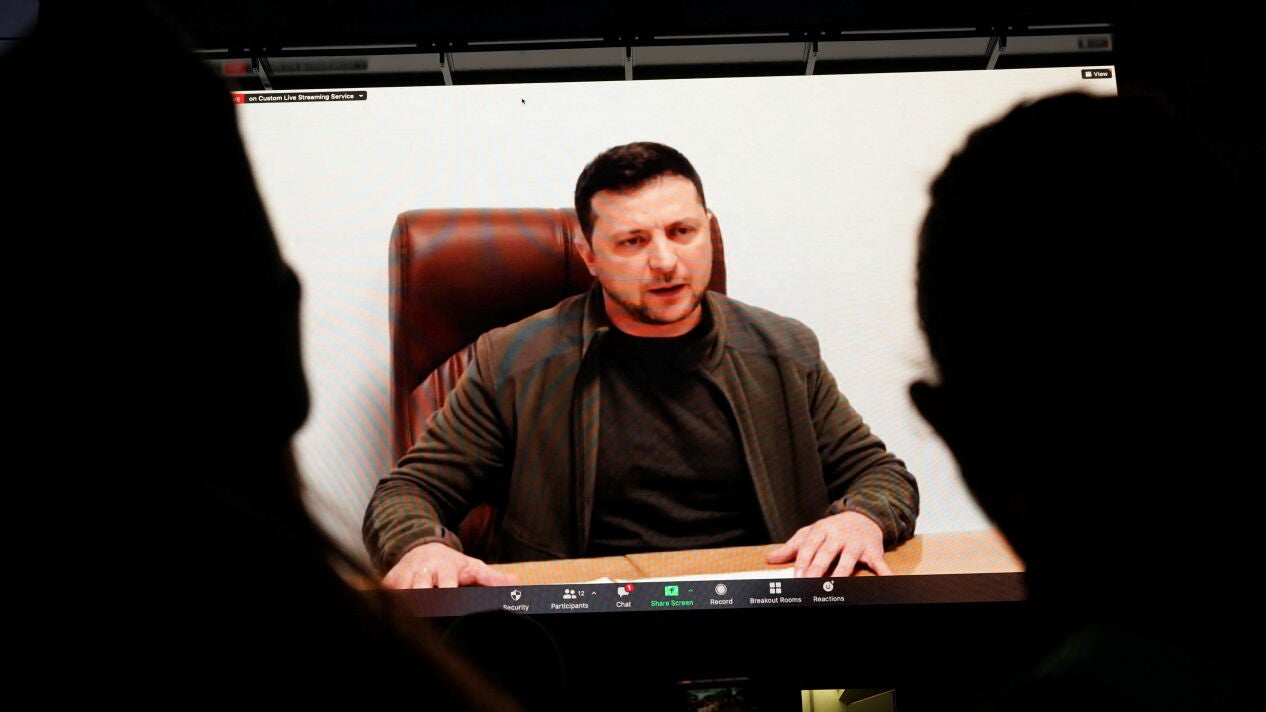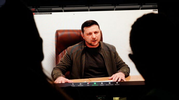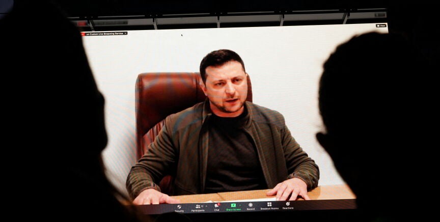El presidente de Ucrania, Volodímir Zelenski, criticó este viernes a la OTAN por la negativa de imponer una zona de exclusión aérea sobre Ucrania, medida que Kiev solicita desde hace días para frenar a Rusia.
