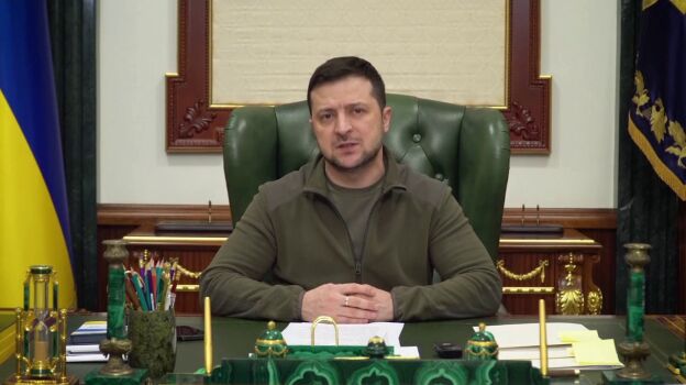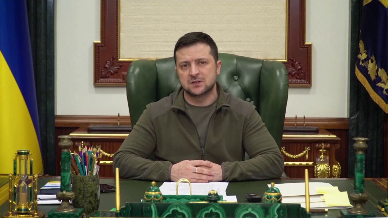 El presidente de Ucrania, Volodímir Zelenski, ha aparecido esta noche por primera vez en su despacho, desde donde grabó un vídeo para demostrar de nuevo que se encuentra en Kiev para dirigir, "sin miedo a nadie", la defensa del país contra la ofensiva militar rusa.