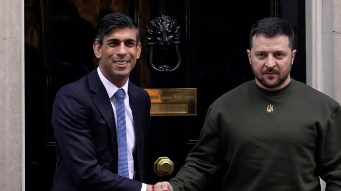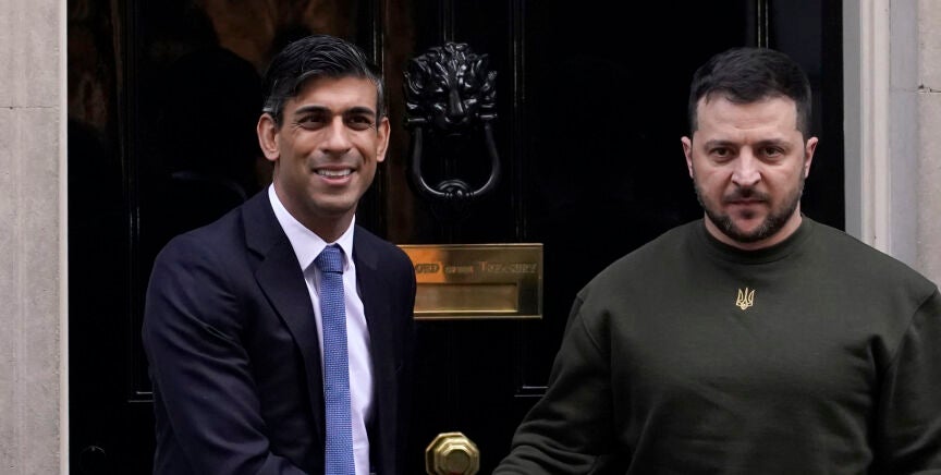 Sunak y Zelenski han discutido sobre el apoyo de Reino Unido a Ucrania, "empezando con un aumento inmediato de la entrega de equipamiento militar al país para ayudar a hacer frente a una ofensiva de primavera de Rusia y reforzar el apoyo a largo plazo", al tiempo que el primer ministro británico ofrecerá su apoyo al plan propuesto por el presidente de Ucrania para lograr la paz.
