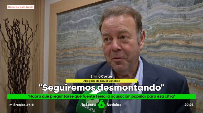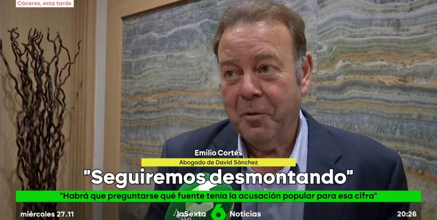 Emilio Cortes ha hablado con laSexta después de conocer que la jueza ha citado a declarar como imputado el próximo 9 de enero a David Sánchez Pérez Castejón, además del presidente de la Diputación, Miguel Ángel Gallardo y a otros siete cargos socialistas. Todos ellos están investigados por un delito de malversación por unas supuestas irregularidades en el nombramiento de David Sánchez como coordinador de actividades de los conservatorios de música de la Diputación de Badajoz.