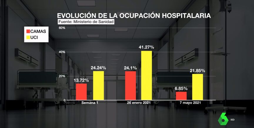 En lo referente a la ocupación hospitalaria, cuando arrancó el estado de alarma estaba al 13% en camas hospitalarias y al 24 las UCI. Tras el pico de enero, cerramos el ciclo con unos porcentajes muy similares en las Unidades de Cuidados Intensivos. Por ello, hay preocupación entre los sanitarios por la presión con la que los hospitales se han despedido del estado de alarma.
