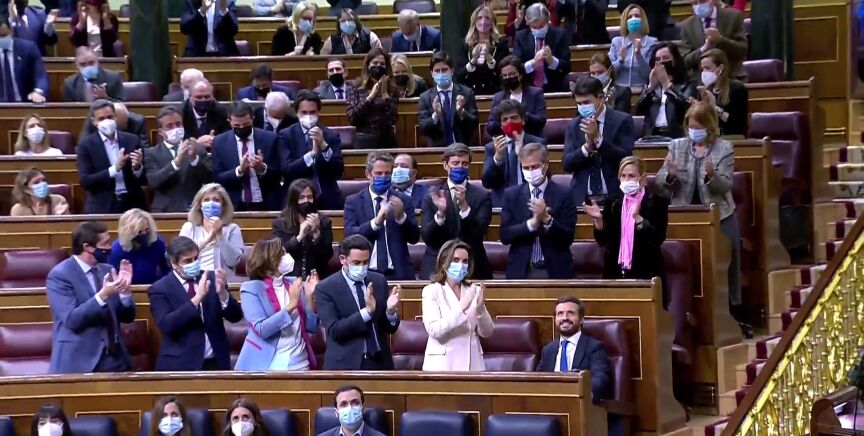 Los aplausos a Pablo Casado de la bancada popular, los mismos que ayer lo dejaron solo