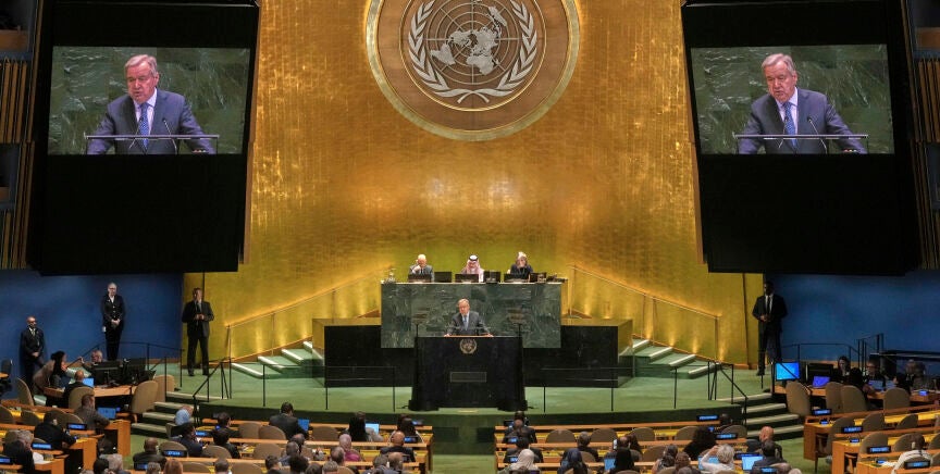 El debate arrancará este lunes y concluirá dentro de una semana, el 29 de septiembre, con la oportunidad para los jefes de Estado y de Gobierno de los 193 países representantes para tratar cualquier tema que estimen. Pero hay una cuestión sobre la mesa que no deja de ser relevante, como es la efectividad real de la solución de los dos Estados a la hora de acabar con el genocidio que Israel está perpetrando en la Franja de Gaza.