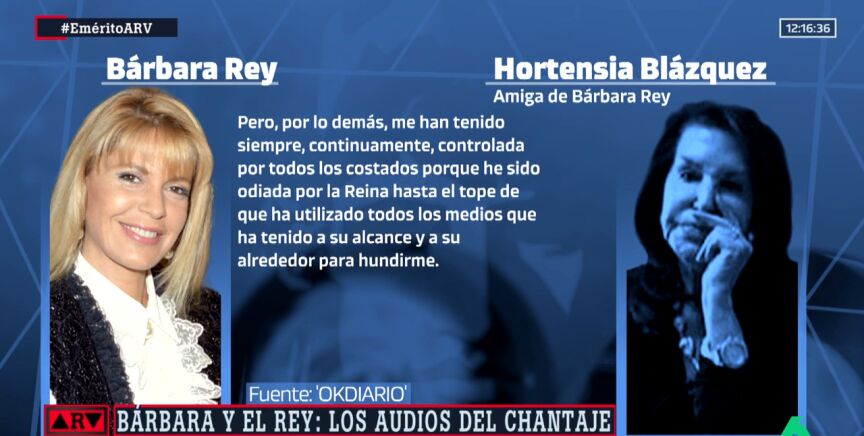 "Sabe a lo que estoy sometida porque me ha cortado la libertad, porque ha permitido que me corten el trabajo, porque ha permitido que se me corte el acceso a cualquier tipo de nivel social y a cualquier acto social", reprocha Bárbara Rey en ese audio, en el que añade: "He ido cuatro veces o dos veces, cuando he podido o cuando he querido a algún acto de él porque sabía que no tenía más remedio, pero, por lo demás, me han tenido siempre, continuamente, controlada por todos los costados".
