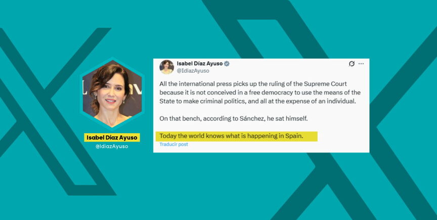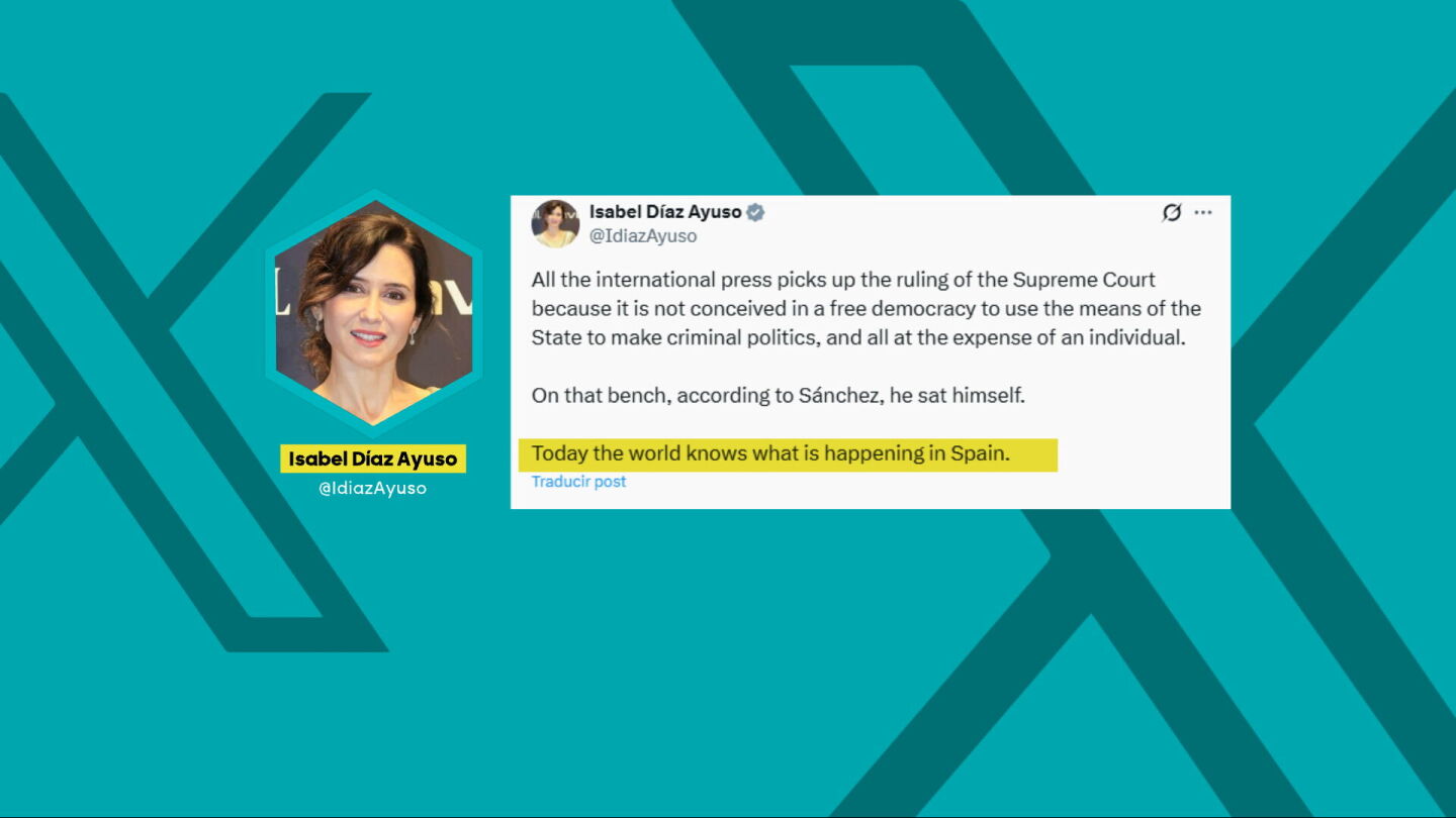 "Toda la prensa internacional recoge el fallo del Supremo porque no se concibe en una democracia libre, utilizar los medios del Estado para hacer política delinquiendo, y todo a costa de un particular. En ese banquillo, según Sánchez, se sentaba él mismo", ha apuntado en un mensaje que también ha publicado en inglés.