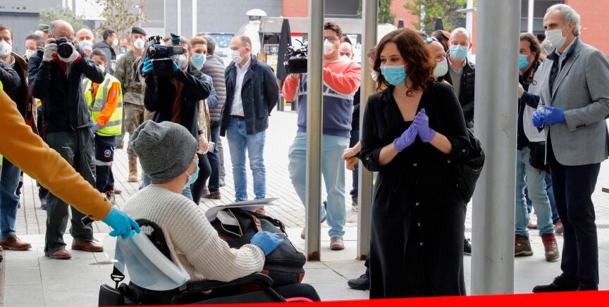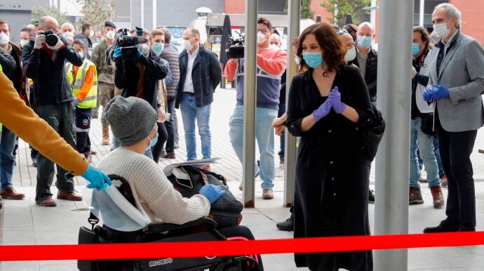 Ayuso reaparece en Ifema tras recibir el alta y anuncia "test selectivos" para analizar la evolución del coronavirus