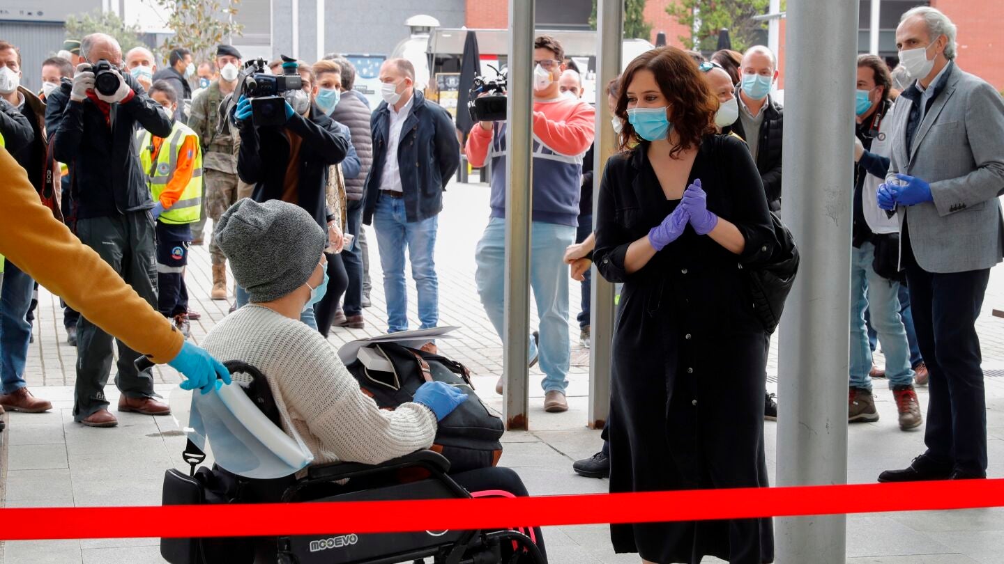 El hospital temporal de Ifema ha sido el primer destino que ha querido visitar la presidenta de la Comunidad de Madrid tras recibir el alta por coronavirus. Ayuso ha apostado por realizar "test selectivos" para "estudiar cómo funciona la epidemia y cómo va a evolucionar".