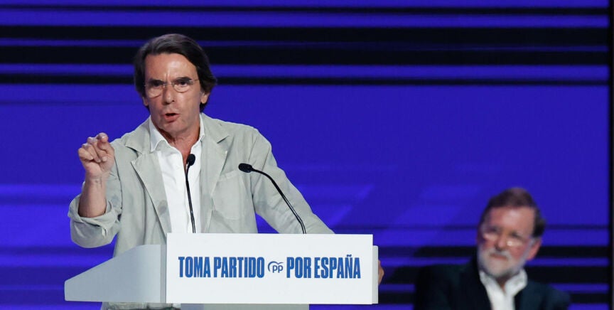 Aznar avisa a Sánchez: "Si negocias presupuestos con delincuentes, que no te extrañe acabar en la cárcel"
