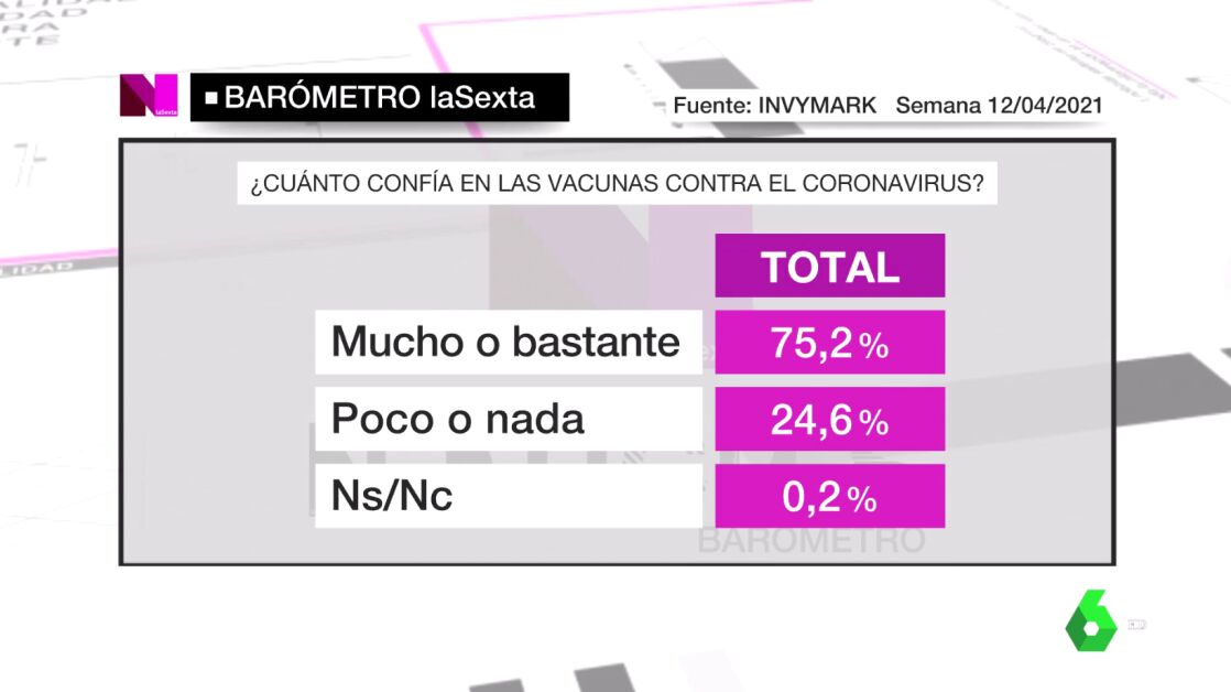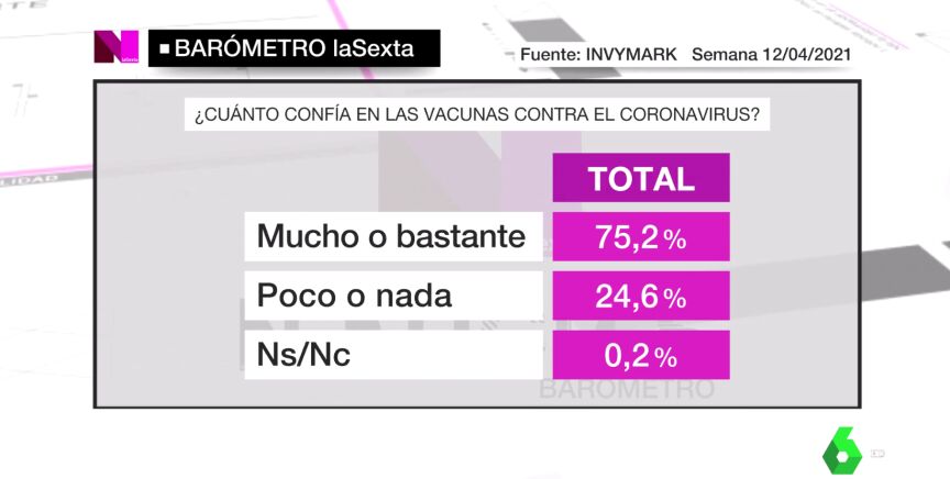 Barómetro laSexta | El 75,2% de los encuestados confía en las vacunas contra el coronavirus
