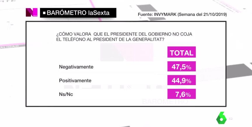 Barómetro laSexta | El 47,5% de los encuestados critica el rechazo de Sánchez a coger el teléfono a Torra