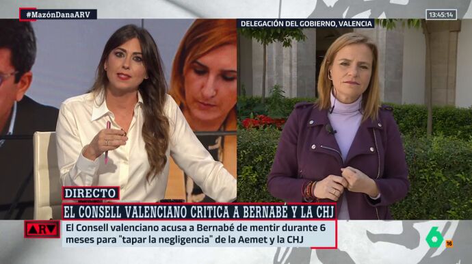 En la entrevista en Al Rojo Vivo, Bernabé ha señalado que, según la ley, la Generalitat estaba obligada a vigilar los cauces y barrancos. Pese a que ha reconocido que la Confederación Hidrográfica del Júcar no informó del desbordamiento del barranco del Poyo, ha hecho hincapié en que eso dependía de la Generalitat.
